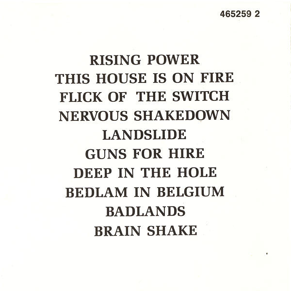 2 page B&W insert contains Flick of the Switch graphic. 2nd Australian CD issue Made in Australia by Disctronics Limited
