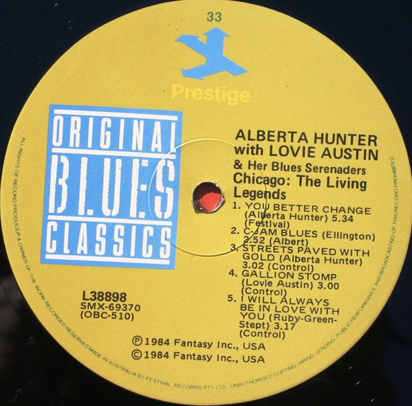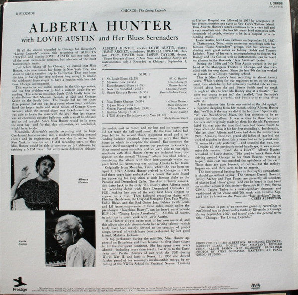 Alberta Hunter ,With Lovie Austin's Blues Serenaders - Chicago: The Living Legends - LP, Album, RE - Very Good Plus (VG+)