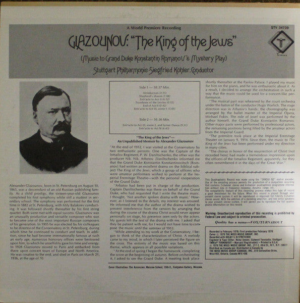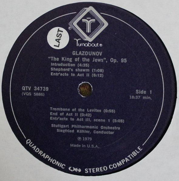Alexander Glazunov / Stuttgarter Philharmoniker, Siegfried Köhler - The King Of Jews (Music To Grand Duke Konstantin Romanov's Mystery Play) - LP, Album, Quad - Near Mint (NM or M-)