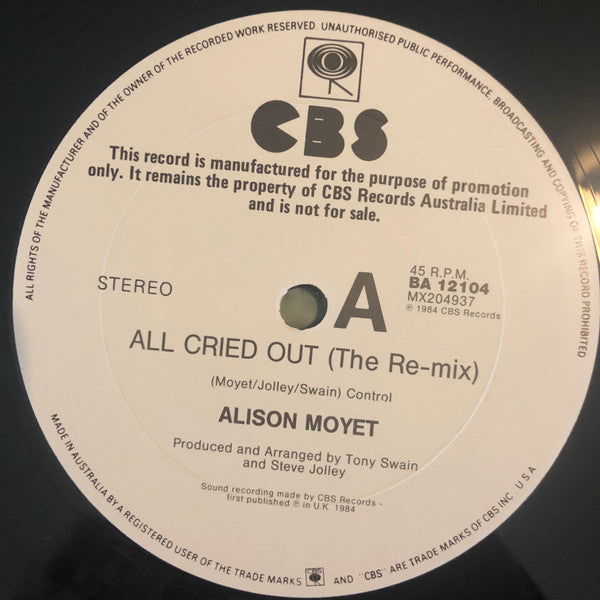 Alison Moyet - All Cried Out - 12", Promo - Near Mint (NM or M-)