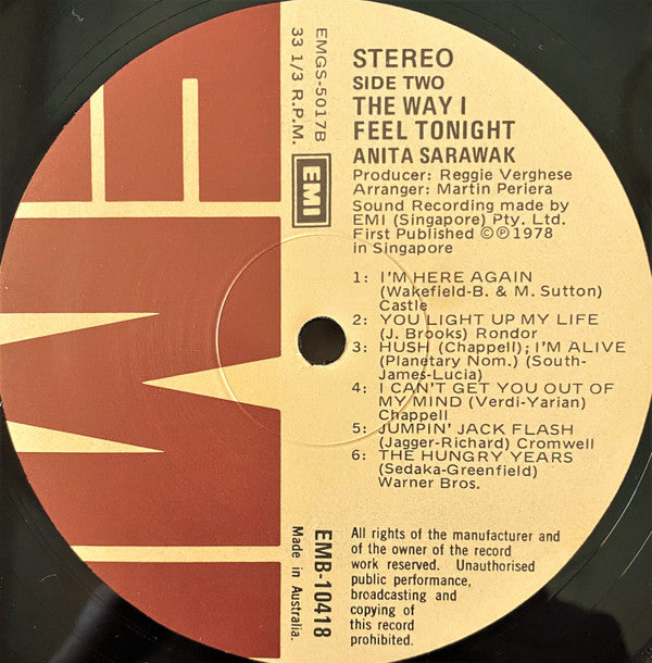 Anita Sarawak - The Way I Feel Tonight - LP - Very Good Plus (VG+)