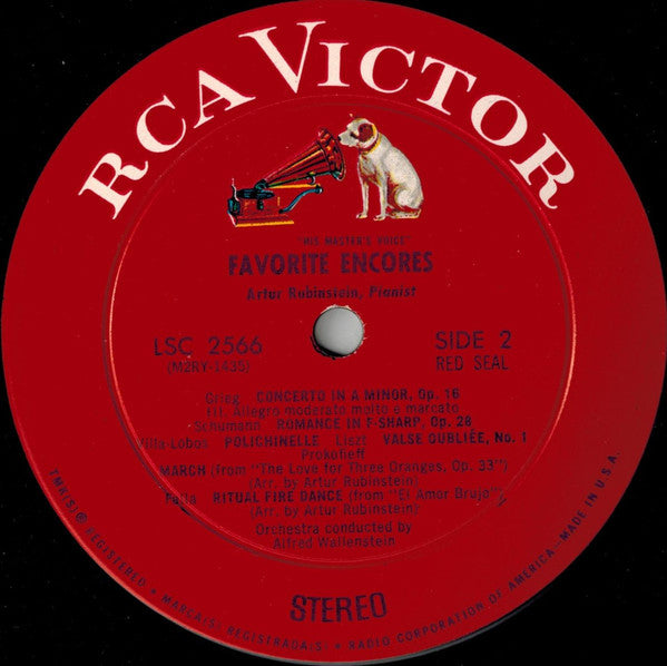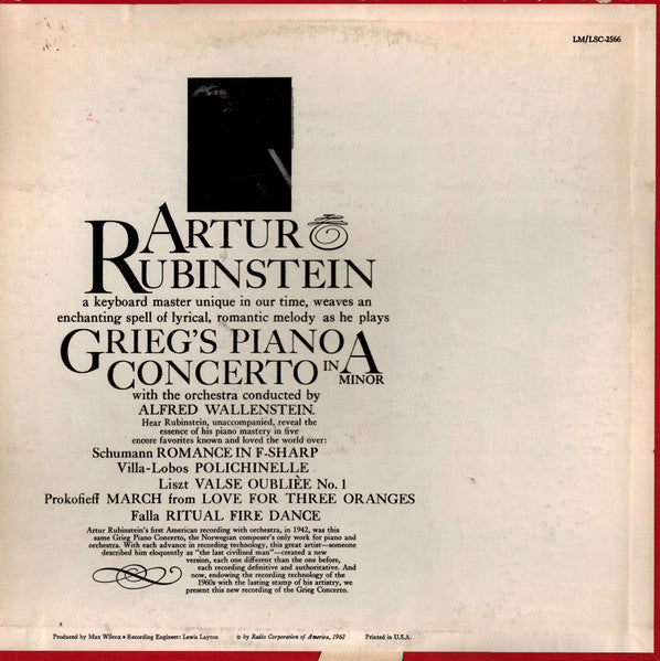 Arthur Rubinstein, Alfred Wallenstein - Edvard Grieg, Manuel De Falla, Franz Liszt, Robert Schumann, Sergei Prokofiev, Heitor Villa-Lobos - Grieg Piano Concerto (and Favorite Encores) - LP, Album - Near Mint (NM or M-)