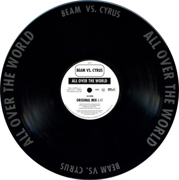 Beam Vs. Cyrus - All Over The World - 12", Etch - Near Mint (NM or M-)