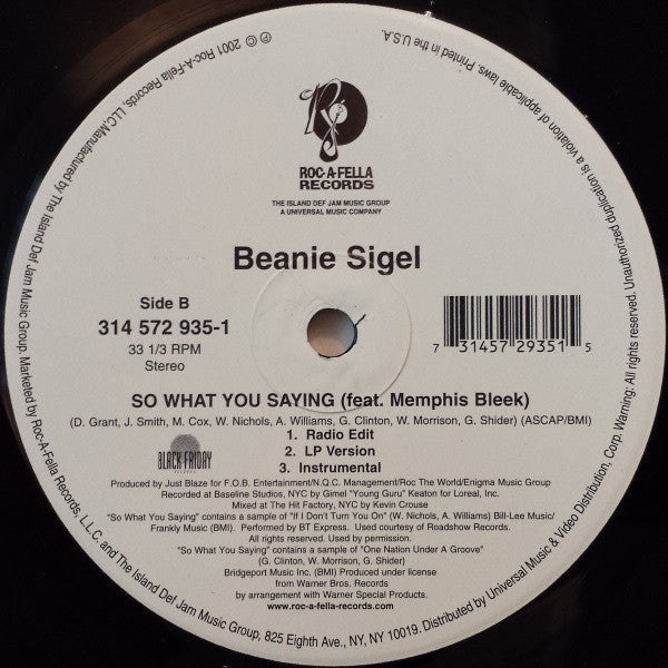 Beanie Sigel - Beanie (Mack B****) - 12" - Very Good (VG)