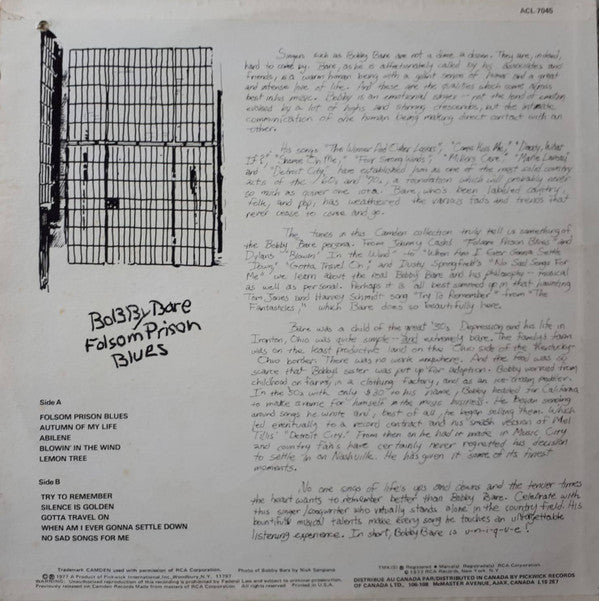 Bobby Bare - Folsom Prison Blues - LP, Album, RE - Near Mint (NM or M-)