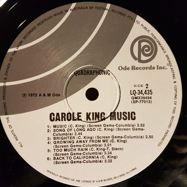 Label variation from 1st Australian Quadraphonic release. (Labels) Made in Australia by Festival Records Pty. Ltd. ℗ 1972 A & M Ode LQ-34,435 (SP-77013) (Sleeve) Matte Gatefold Sleeve SODL-934,435 (SP-77013) Manufactured in Australia by Festival Records Pty. Limited Includes lyric insert and advertising insert.