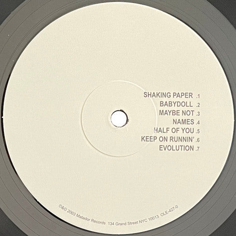Gatefold sleeve. Includes a fold-out insert with lyrics and credits. ℗&© 2003 Matador Records All songs [... published by Dreading Futures/Doorman Music, BMI, except "Werewolf" [... published by Snocko Music, BMI; "Keep on Runnin'" ("Crawlin' Black Spider") [... published by King of Boogie, BMI. First catalog number from rear, second from label, third from insert. Runouts are stamped.