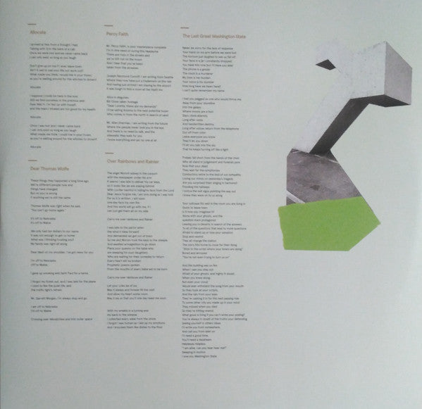Original pressing on black vinyl. Download card included. Printed inner sleeve with lyrics. Note : Mount Rainier is correctly spelled in the title of the song "Over Rainbows And Rainier" but misspelled in the lyrics ("Rainer", twice). ©+℗ 2018 Secretly Canadian. Recorded & Mixed [... at Sonikwire Studio Mastered [... at Sterling Sound NYC