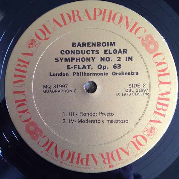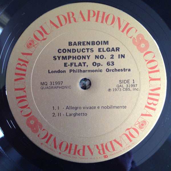 Daniel Barenboim Conducts Sir Edward Elgar - London Philharmonic Orchestra - Symphony No. 2 - LP, Album, Quad - Very Good Plus (VG+)