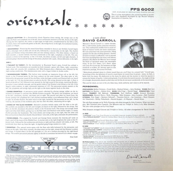 David Carroll & His Orchestra - Percussion Orientale: Musical Sounds Of The Middle East - LP, Album - Very Good Plus (VG+)