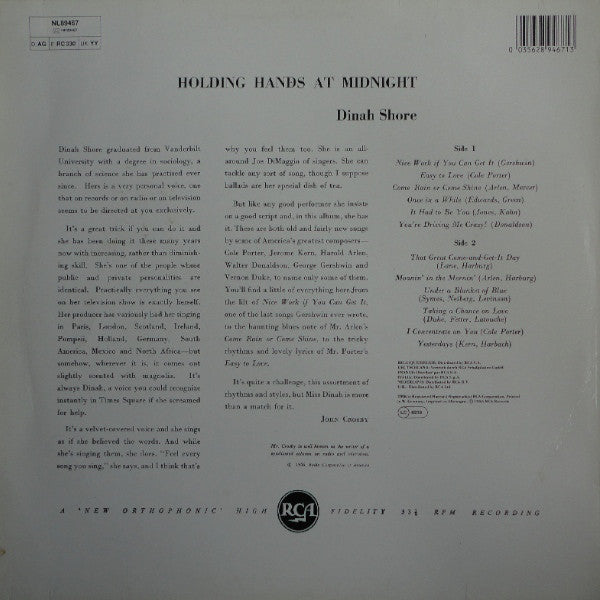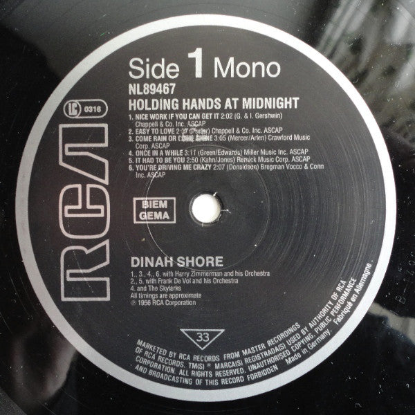 Dinah Shore - Holding Hands At Midnight - LP, Mono, RE - Near Mint (NM or M-)