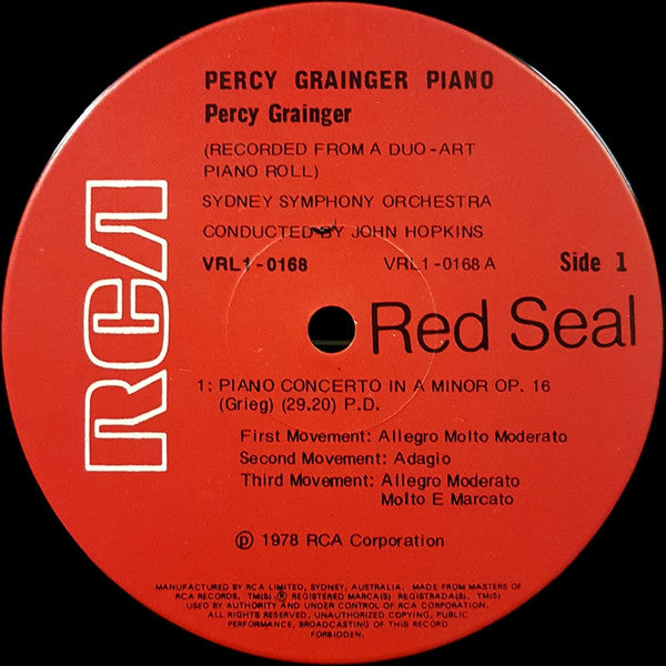 Edvard Grieg, Percy Grainger, Sydney Symphony Orchestra, John Hopkins , Leopold Stokowski And His Symphony Orchestra - Concerto In A Minor, Op. 16 / Stokowski Conducts Percy Grainger Favourites - LP, Comp - Very Good Plus (VG+)