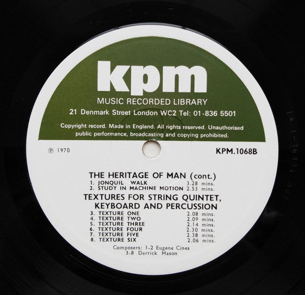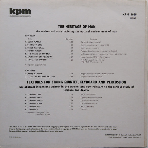 Eugene Cines / Derrick Mason - The Heritage Of Man/Textures For String Quartet, Keyboard, & Percussion - LP - Very Good Plus (VG+)