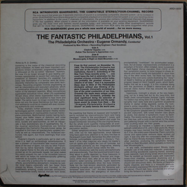 Eugene Ormandy - The Fantastic Philadelphians, Vol. 1 - Sheer Sonic Sorcery - LP, Album, Quad - Very Good Plus (VG+)