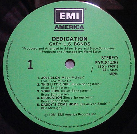 Gary U.S. Bonds - Dedication - LP, Album - Near Mint (NM or M-)