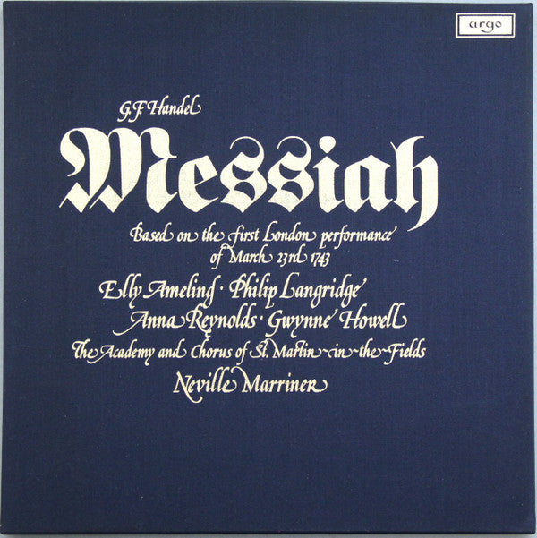 Georg Friedrich Händel, Elly Ameling ∙ Philip Langridge, Anna Reynolds ∙ Gwynne Howell, The Academy Of St. Martin-in-the-Fields And Chorus Of St Martin In The Fields, Sir Neville Marriner - Messiah (Based On The First London Performance Of March 23rd