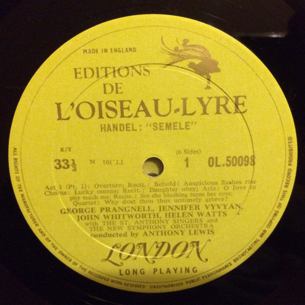 Georg Friedrich Händel, St. Anthony Singers, The New Symphony Orchestra Of London, Anthony Lewis - Semele - 3xLP, Album, Mono, RE + Box - Very Good Plus (VG+)