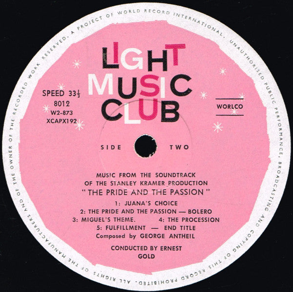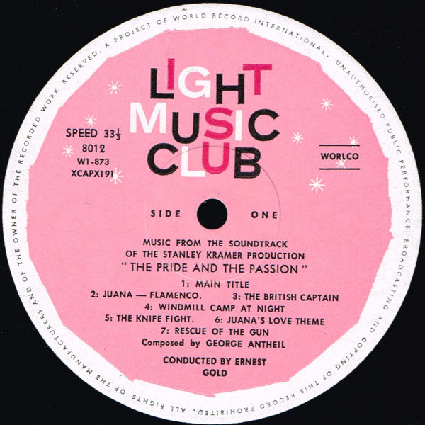 George Antheil - The Pride And The Passion (Music From The Original Soundtrack Of The Motion Picture) - LP, Album, Mono, Club - Very Good Plus (VG+)