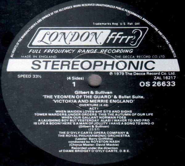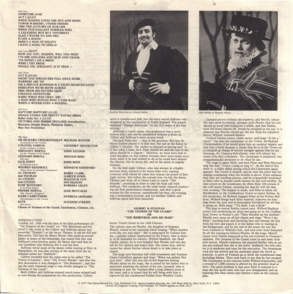 Includes 12-page booklet with synopsis by David Mackie, and full libretto. Release is auto-coupled (sides arranged for record changers).