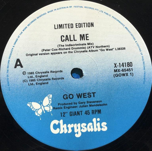 Go West - Call Me (The Indiscriminate Mix) - 12", Single, Ltd - Very Good Plus (VG+)