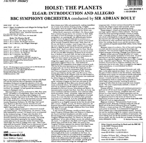 Gustav Holst, Sir Edward Elgar, Sir Adrian Boult Conducts BBC Symphony Orchestra - The Planets / Introduction & Allegro For Strings - LP, Comp, Mono - Near Mint (NM or M-)