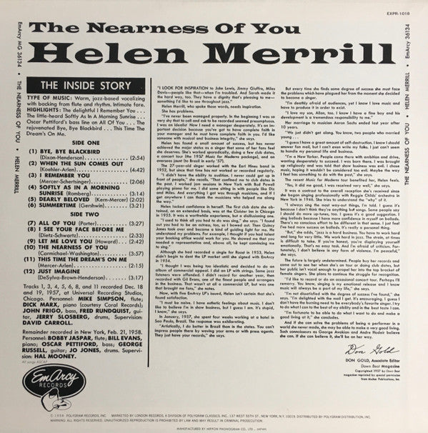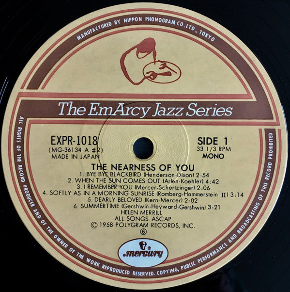 Helen Merrill - The Nearness Of You - LP, Album, Mono, RE - Very Good Plus (VG+)