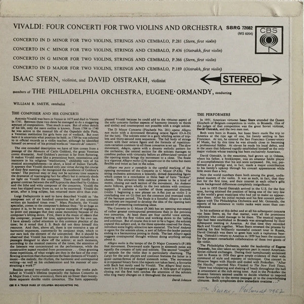 Isaac Stern, David Oistrach, Eugene Ormandy, The Philadelphia Orchestra - Four Vivaldi Concerti For Two Violins And Orchestra - LP, Album - Near Mint (NM or M-)