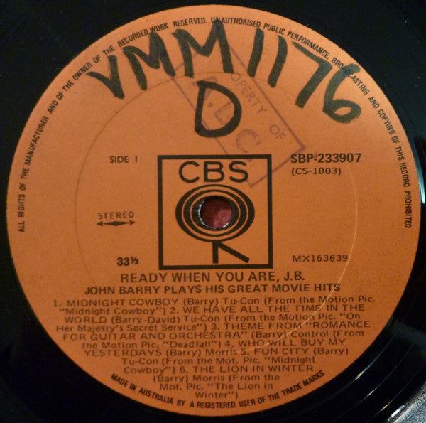 John Barry - Ready When You Are, J.B. - LP, Album, Comp - Very Good Plus (VG+)