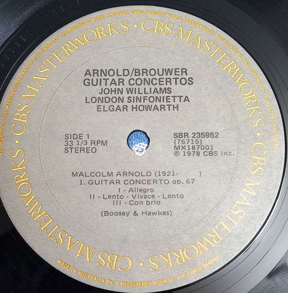 John Williams , Elgar Howarth, London Sinfonietta - Malcolm Arnold: Guitar Concerto, Op. 67 - Leo Brouwer: Guitar Concero - LP, Album, Gat - Very Good Plus (VG+)