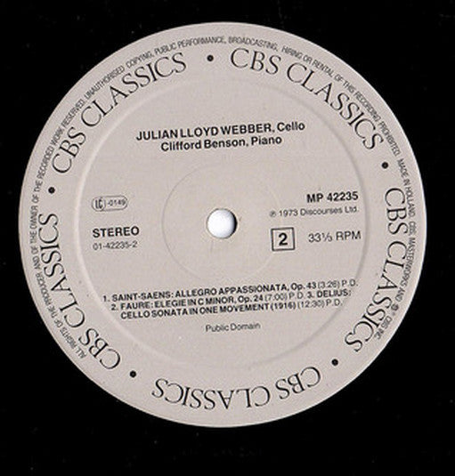Julian Lloyd Webber - Debut - Music For The Cello - LP, RE - Very Good Plus (VG+)