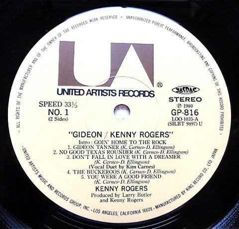 ℗1980 United Artists Records Inc. Manufactured by King Record Co. Ltd., Tokyo, Japan
