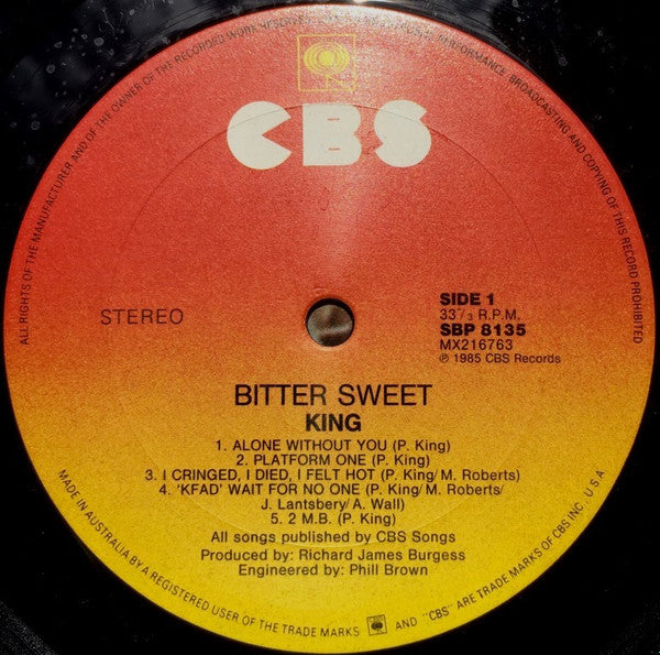 King - Bitter Sweet - LP, Album - Very Good Plus (VG+)