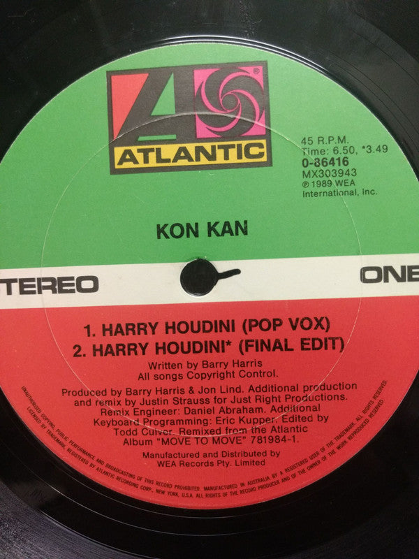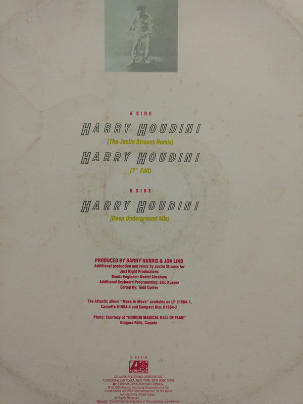 ℗ 1989 WEA International Inc. Mix names differ on the label: A1: Harry Houdini (Pop Vox) A2: Harry Houdini (Final Edit) B: Harry Houdini (House Mix)