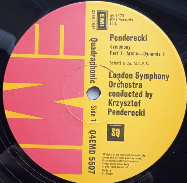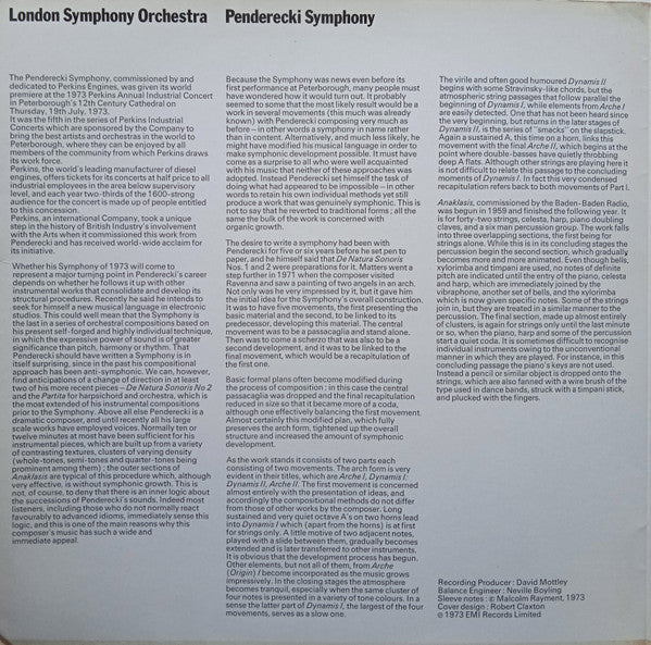 Krzysztof Penderecki / London Symphony Orchestra - Symphony / Anaklasis For Strings And Percussion - LP, Quad, Gat - Near Mint (NM or M-)