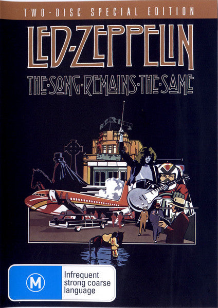 Warner Bros. presents Led Zeppelin "The Song Remains The Same" co-starring John Bonham John Paul Jones Jimmy Page Robert Plant Concert sequences filmed at Madison Square Garden, remixed and remastered in DTS 5.1, Dolby Digital 5.1 and 2 Track Stereo from the original master tracks. "The Song Remains The Same" © 1976 Swan Song Inc. Package Design & Supplementary Material Compilation © 2007 Warner Bros. Entertainment Inc. Distributed by Warner Bros. Entertainment Australia Pty Ltd. Region 4: Widescreen-1.85:1. 16:9 Transfer Dual Layer Format.