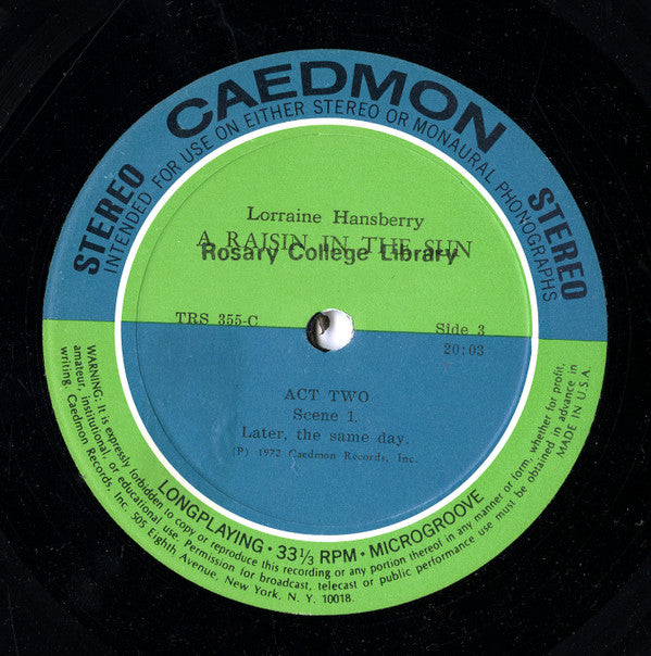 Lorraine Hansberry - A Raisin In The Sun - 3xLP - Mint (M)