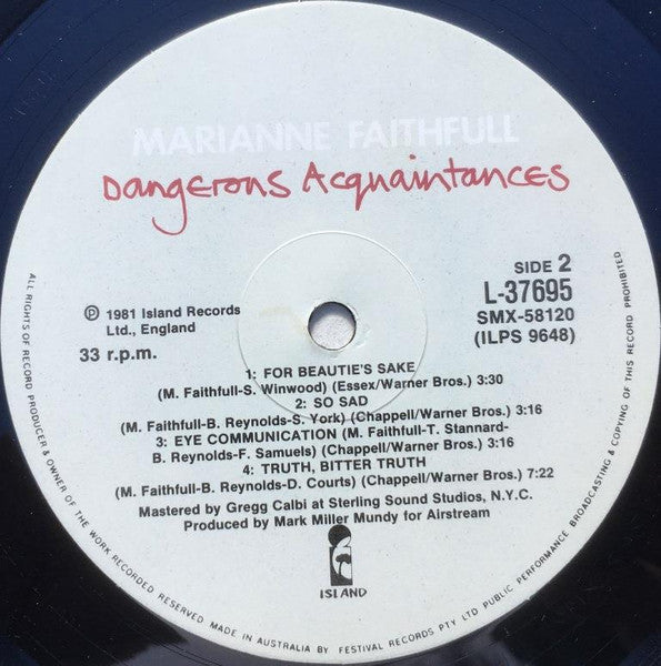 Marianne Faithfull - Dangerous Acquaintances - LP, Album, Fir - Very Good Plus (VG+)