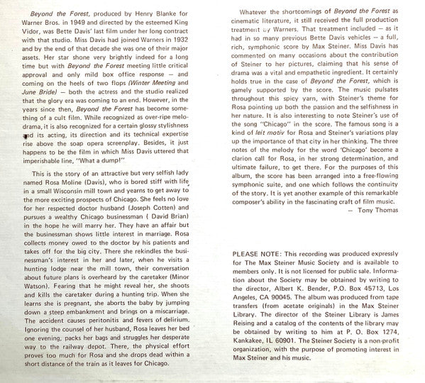 Max Steiner - Beyond The Forest (The Classic Film Score) - LP, Album, Pal - Very Good Plus (VG+)