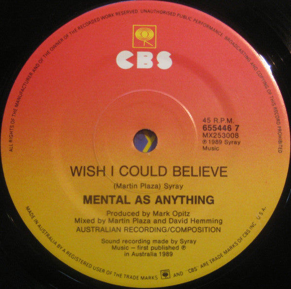 Mental As Anything - Baby You're Wild - 7", Single - Very Good Plus (VG+)