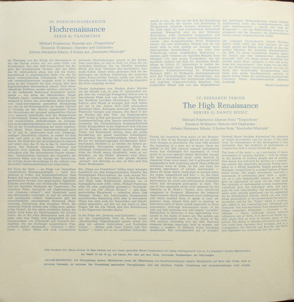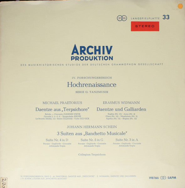 Michael Praetorius, Erasmus Widmann, Johann Hermann Schein, Collegium Terpsichore - Daentze Aus "Terpsichore" ‧ Daentze Und Galliarden ‧ 3 Suiten Aus "Banchetto Musicale" - LP, RE - Near Mint (NM or M-)
