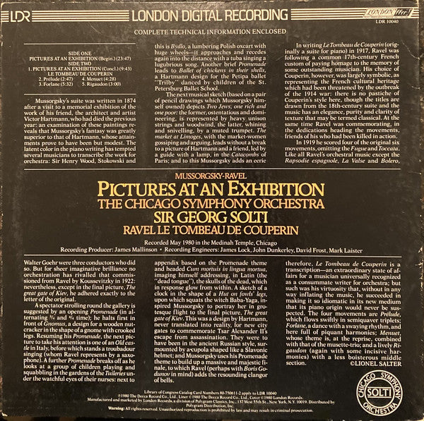 Modest Mussorgsky - Maurice Ravel, Chicago Symphony Orchestra, Georg Solti - Pictures At An Exhibition / Le Tombeau De Couperin - LP - Near Mint (NM or M-)