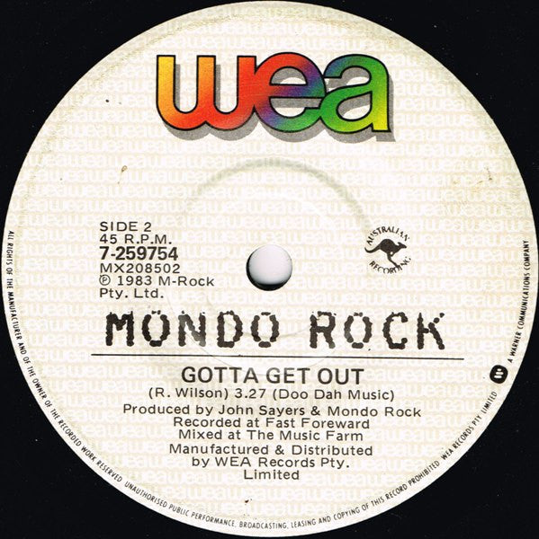 ℗ 1983 M-Rock Pty. Ltd. Australian recording Recorded at Fast Foreward [sic Mixed at The Music Farm Some were released with a picture sleeve, others with a generic sleeve.
