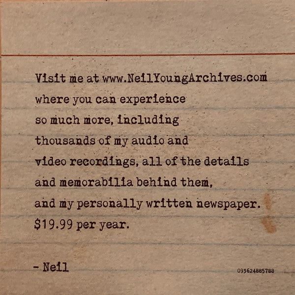 Made in Czech Republic. Back cover states this as a "Porch Episode". Contains insert advertisement for www.NeilYoungArchives.com. First part of runouts including 'CB' are etched, the rest are stamped. [Rear sleeve: [Source logo Mastered from 192/24 digital Mastered [... at Bernie Grundman Mastering, Hollywood, CA. Reprise Records, a Warner Music Group Company. 777 S. Santa Fe Ave., Los Angeles, CA 90021; 1633 Broadway, New York, NY 10019-6708. © ℗ 2021 Reprise Records. Made in Czech Republic. [... [Label side A: "Alabama" and "Campaigner" published by Silver Fiddle Music (ASCAP); "Ohio" published by Broken Arrow Music (BMI); "The Times They Are A-Changin'" published by Special Rider Music (SESAC) [Label side B: "Lookin' For A Leader –2020" and "Little Wing" published by Silver Fiddle Music (ASCAP); "Southern Man" published by Broken Arrow Music (BMI)