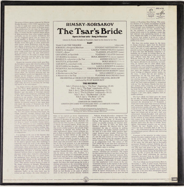 Nikolai Rimsky-Korsakov - Galina Vishnevskaya, Ирина Архипова, Vladimir Atlantov, Evgeny Nesterenko, Bolshoi Theatre Orchestra & Chorus Of The Bolshoi Theatre, Фуат Мансуров - The Tsar's Bride - 3xLP, RE, Win + Box - Near Mint (NM