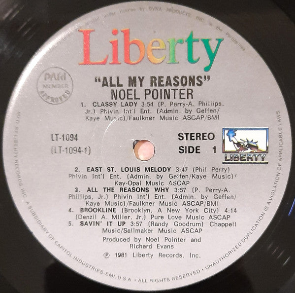 Noel Pointer - All My Reasons - LP, Album - Very Good Plus (VG+)