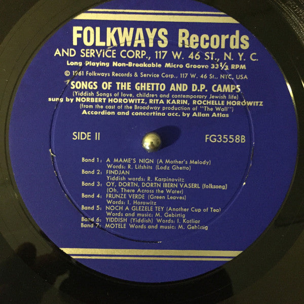 Comes With 11 Page Booklet *Song From "The Wall" : The Play About Warsaw Ghetto Uprising Against The Nazis: Ghetto, Partisan, Folk And Love Songs. *Sung In Yiddish By Norbert Horowitz, Rita Karin (Karpinovicz), And Rochelle Horowitz *Play By Millard Lampell *Concertina And Accordion Accompaniment By Allen Atlas * Culture Group: Jewish