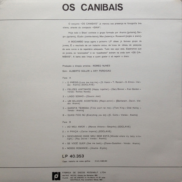 Os Canibais - Os Canibais - LP, Album, RE - Mint (M)