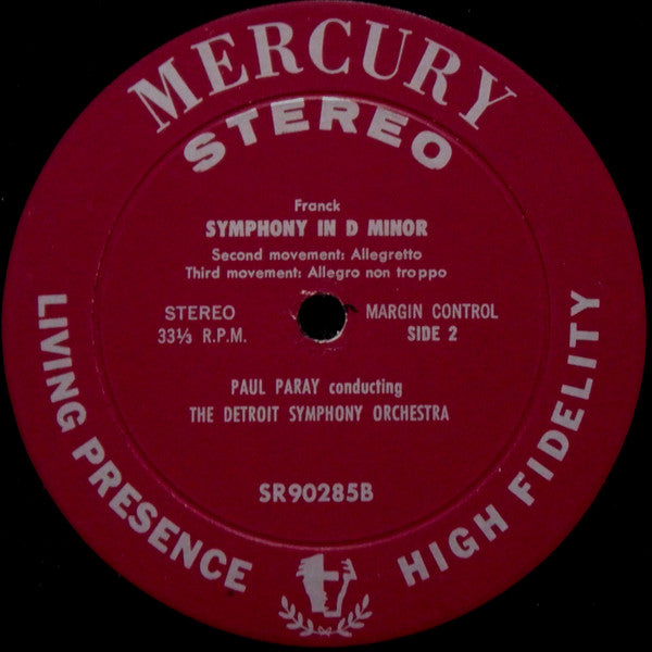 Paul Paray / Detroit Symphony Orchestra / César Franck - Symphony In D Minor - LP, Album, RFR - Very Good Plus (VG+)