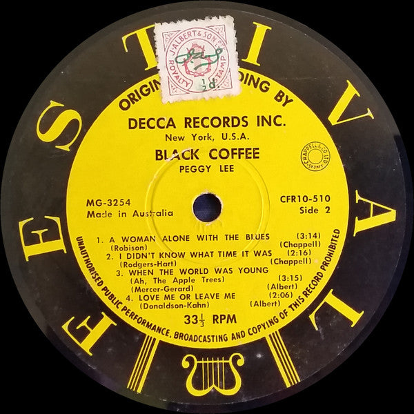 Peggy Lee - Black Coffee - 10", Mono - Good Plus (G+)