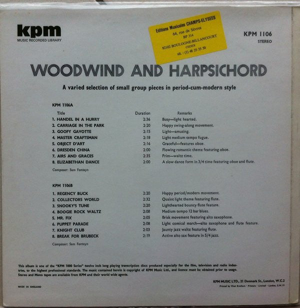 Sam Fonteyn - Woodwind And Harpsichord - LP - Very Good (VG)